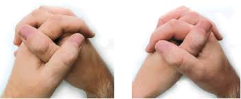 Cuba silangkan tangan kanan dan tangan kiri, kemudian tengok ibu jari mana satu yang berada di atas. Lepas tu twist, tukarkan ibu jari yang sepatutnya berada di atas tadi ke bawah.